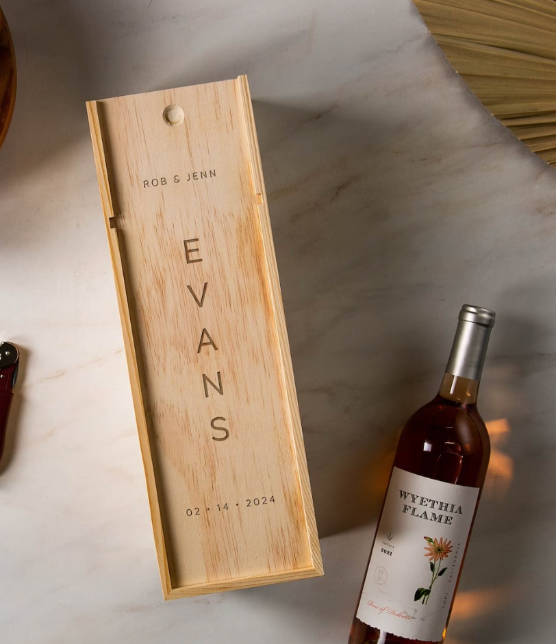 Unit price perElevate your gift giving with our exquisite Wooden Wine Box. Crafted with a luxurious walnut wooden box and topped with a sleek slotted wooden lid, this sophisticated piece makes for the perfect closing gift. A tasteful touch that will surely impress any recipient.